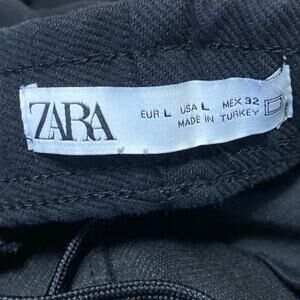 Zara Women's Black High Rise Elastic Waist Straight Leg Pull On Trousers Pants L