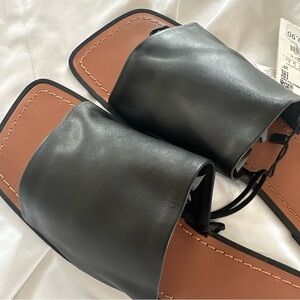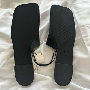 Elegant black leather slides from Zara. Sleek design for versatile wear.