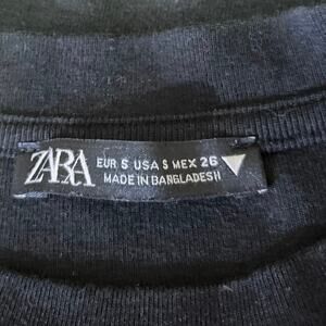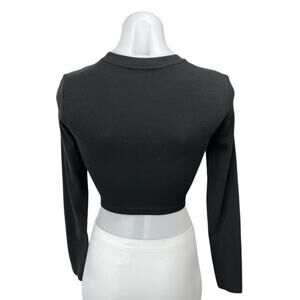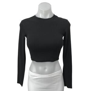 Zara Women's Black Long Sleeve Crew Neck Cropped Pullover Sweater Top Size S