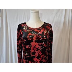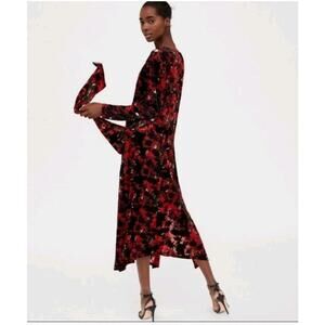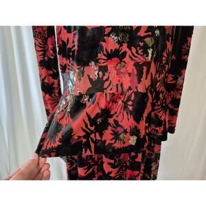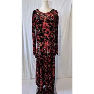 Zara Women's Black Red Burnout Floral Velvet Maxi Dress Medium