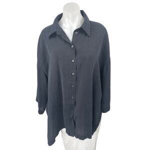 Zara Women's Black Relaxed Oversized Long Sleeve Button Up Shirt Tunic Top Sz M