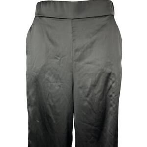Zara Women's Black Silk Satin Wide Leg High Waist Pull On Crop Trousers Pants S