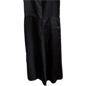 The Zara Women's Black Slip Dress is a stylish and elegant choice for various occasions such as parties, weddings, or even travel. This midi dress features a satin fabric with a solid black color, a sleeveless design, and a flattering V-neckline. Perfect for the warmer seasons like summer, fall, or spring, this classic dress exudes sophistication and timeless beauty. Easy to care for with machine washable instructions, this dress is a versatile addition to any woman's wardrobe.
