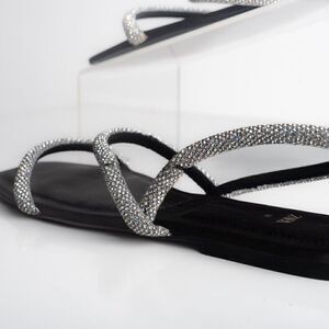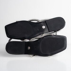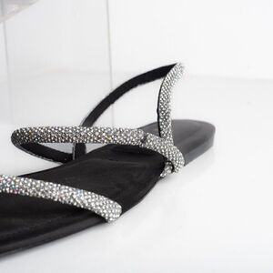 Zara Womens Black Strappy Rhinestone Slingback Flat Sandals Sz US 7.5 EU 38