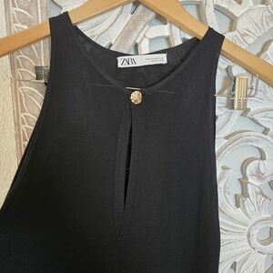 Zara Women's Black Textured Wide Leg Sleeveless Jumpsuit Gold Accent M