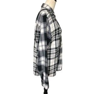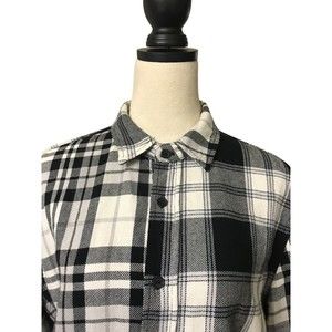 Zara Womens Black White Plaid Flannel Shacket Oversized Relaxed Fit Button Up S