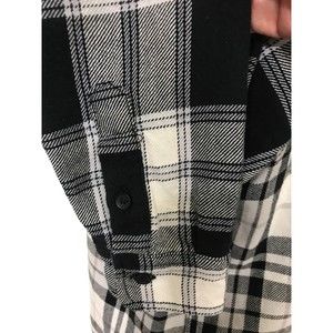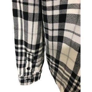 Zara Womens Black White Plaid Flannel Shirt Jacket Shacket Oversized Relaxed Fit Button Up Long Sleeves Western 2 button cuff