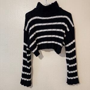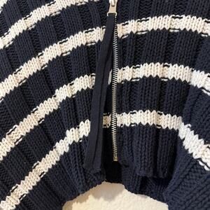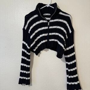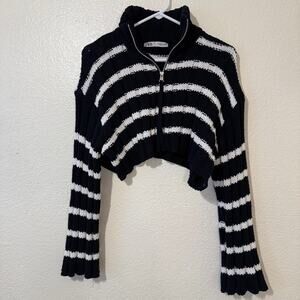 Zara Women's Black White Striped Knitted Cropped Cardigan Sweater Size S