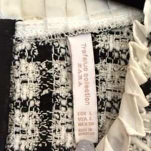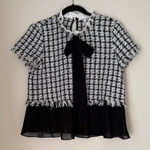 Zara Women's Black White Tweed with Bow Blouse Size L