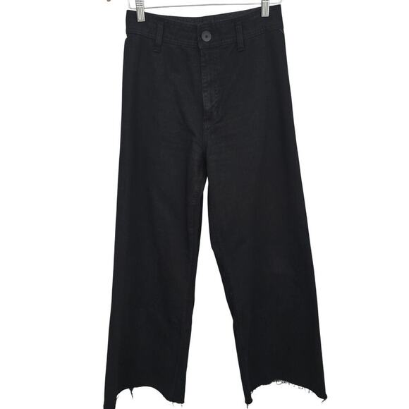 Zara Women’s Black Wide Leg Raw Hem High waisted Jeans Size 8 Boho Grunge Y2K