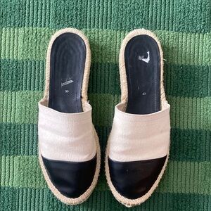 Zara Women's Black and Cream Espadrille Slides sz 39