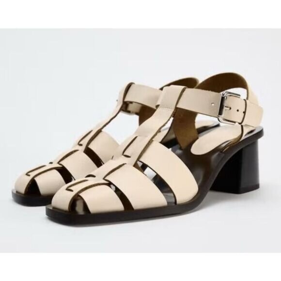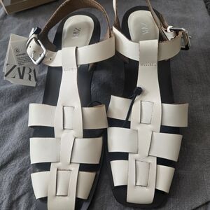 Chic Zara sandals with a stylish cream and black design. Ideal for versatile wear.