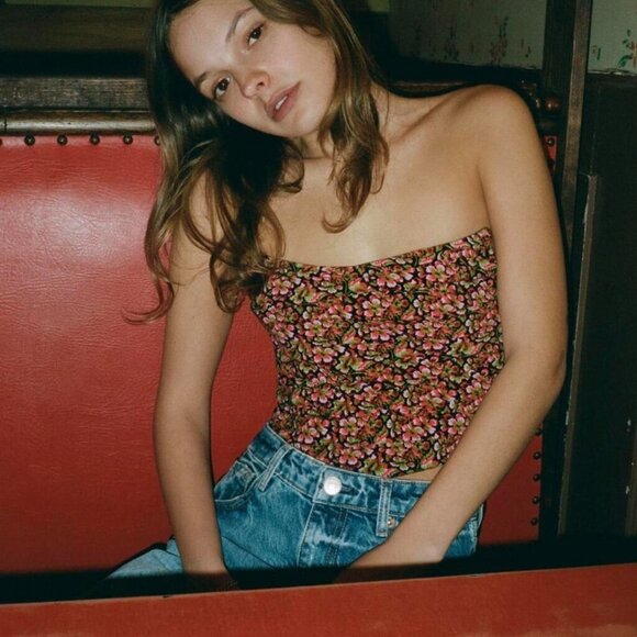 Zara floral crop top/bustier with clasp backing #BA