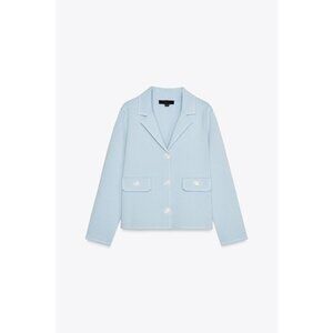 Zara Womens Blazer Jacket Size M Blue Trim Knit Single Breasted 4192/051 NWT