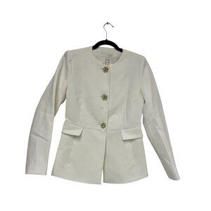Zara Womens Blazer Suit Jacket M Medium Oyster White Gold Buttons 2399/593 NWT