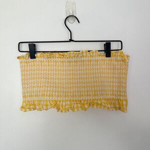Zara Women’s Blogger Favorite Yellow White Gingham Bandeau High Waisted Full Mid