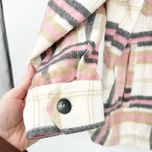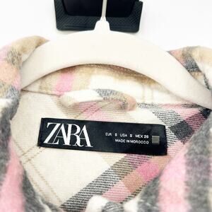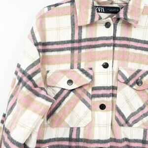 Zara Womens Bloggers Fav Fall Plaid Wool Blend Oversized Shirt Jacket Shacket in Cream and Pink. Size Small.