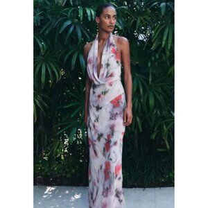 Zara Womens Bloggers Favorite Printed Midi Halter Dress Multicolor Size XL