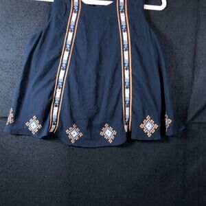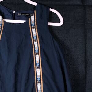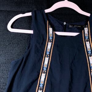 Zara Womens Blouse Blue Sleeveless Embroidered Tank 100% Polyester Small