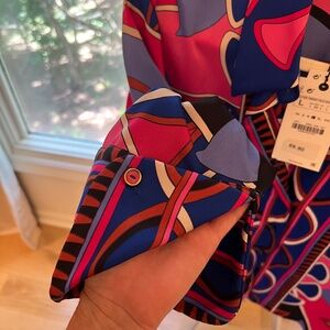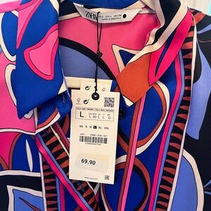 Super fun designer inspired print blouse from Zara. New with tags. Cuff detail. Silky material.