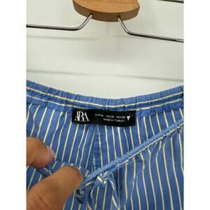 Zara Women's Blue And White Striped Drawstring Cotton Palazzo Leg Pants Size XL