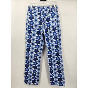 Zara Women's Blue Floral Print High Waist Button Fly Denim Jeans Size 6