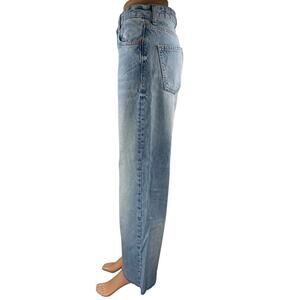 Zara Women's Blue High Waist Frayed Raw Hem Baggy Wide Leg Denim Jeans Pants 6