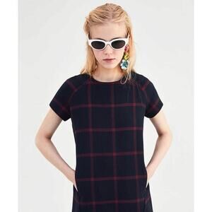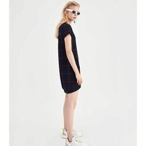 Zara Women's Blue Plaid Checkered Knit Short Sleeve Mini T-Shirt Dress Size XS