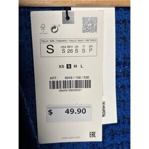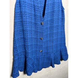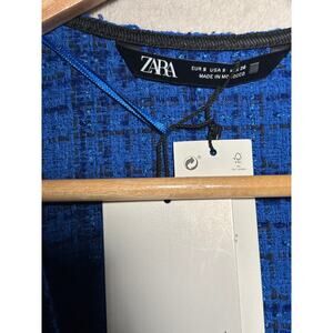 Zara Womens Blue Ruffled Tweed Pinafore Dress V- Neck Button Front Size Small