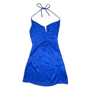 Zara Women's Blue Satin Strappy Halter Mini Slip Summer Dress Size XS