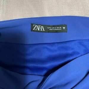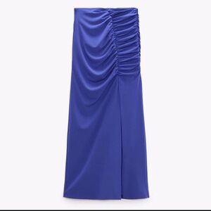 Elevate your style with the Zara Women's Blue Sequin Side Slit Midi Skirt. Perfect for any occasion, this skirt features a stunning blue hue and a chic side slit design.