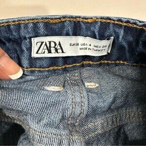 Zara Women’s Blue Straight Leg High Waisted Raw Hem Jeans Dark Wash Size 4 in excellent condition no issues.