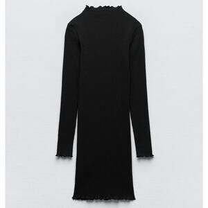 Zara Women’s Bodycon Ribbed Ruffle Trimmed High Neck Long Sleeve Ruffle Detail Black Medium M S1