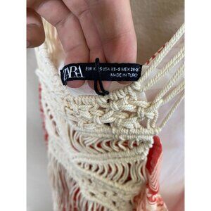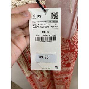 This charming Zara bohemian maxi dress features a vibrant red print and an elegant crochet back, offering a blend of style and comfort. Perfect for a breezy summer outing or a casual evening.