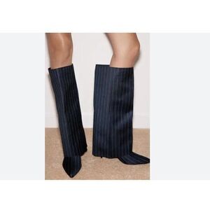Zara Womens Boots Knee High Fabric Gaiter Navy Blue US 10 EU 41 3085/310 NWT