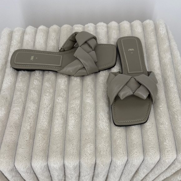 Zara Women's Braided Leather Slide Sandals size 8.5/39