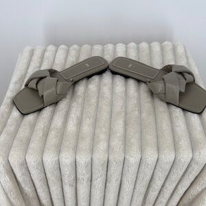Elegant braided design. Comfortable slide style. Perfect for casual wear. They are a grey/green color. Excellent used condition.