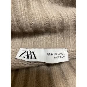 Zara Women's Brown Wool Turtleneck Oversized Puff Sleeve Knit Crop Sweater Top M