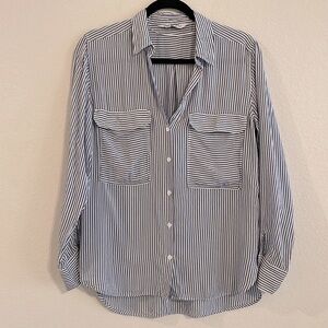 Zara Women’s Button Front Shirt Small Blue Classic Striped Lightweight Causal
