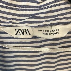Zara Women’s Button Front Shirt Small Blue Classic Striped Lightweight Causal
