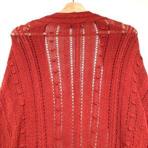 Zara Women's Cardigan Sweater Cable Knit Coat Dark Red Cotton Size M