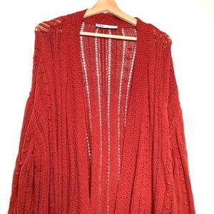 Zara Women's Cardigan Sweater Cable Knit Coat Dark Red Cotton
