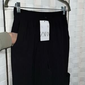 Zara Women’s Cargo Pants Size XS Black Elastic Waist Slit Pockets Slouch Pockets