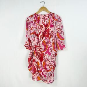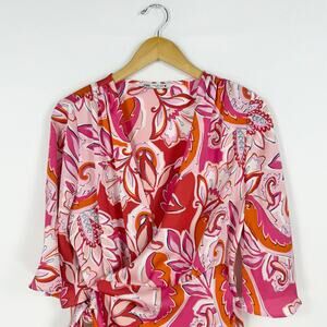 Zara Women's Carla Paisley Floral Wrap Dress Large Pink Bloggers Favorite