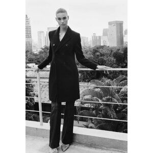 Zara Womens Coat Jacket M Medium Black Wool Blend Double-Breasted 2443/826 NWT