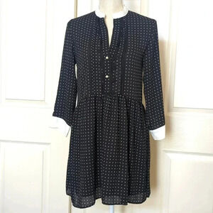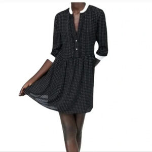 Zara Black & White Collared Polka Dot Babydoll Dress size women's medium - Pearl button accents - White cuffs & collar - Flattering classy & sophisticated. Perfect for work or any event.