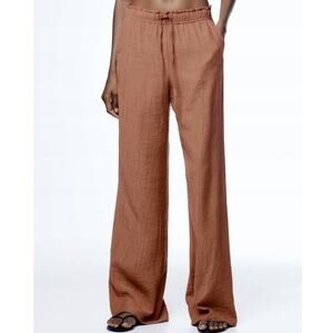 Zara Women's Copper Wide Leg Trousers Pants Size XXL