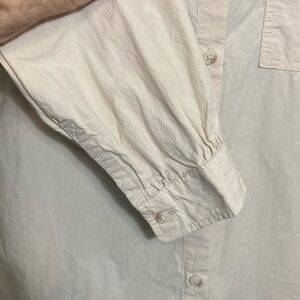 Zara women’s oversized button down cotton shirt, tunic length. Hidden pockets in the side seams. Classic boyfriend fit shirt. Size 11/12, measures 19” PTP. Excellent preowned condition. No flaws.