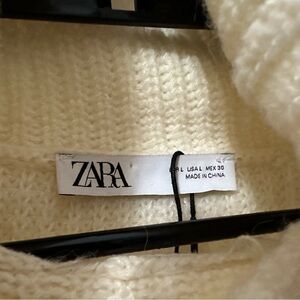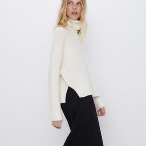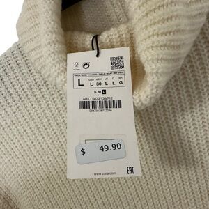 Zara Womens Cowl Neck Ribbed Knit Sweater Sz Large Cream Oversized Pullover