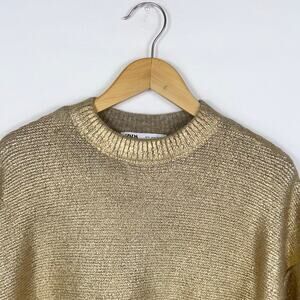 Zara Women's Cracked Metallic Boxy Knit Sweater Small Golden
